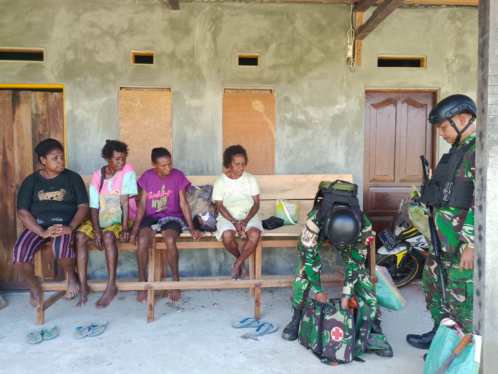 Satgas Yonif 410/Alugoro, khususnya Pos Aroba, sedang melaksanakan kegiatan Pelayanan Kesehatan di Distrik Aroba, Papua Barat. Kegiatan ini bertujuan untuk membantu meningkatkan derajat kesehatan masyarakat setempat.