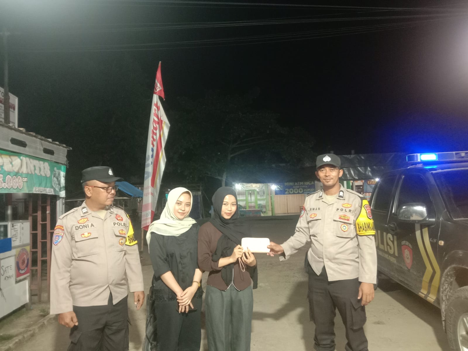 Dompet berwarna pink tersebut ditemukan oleh Bhabinkamtibmas AIPTU Doni A dan Brigpol Erwanto saat melakukan patroli rutin di kawasan Jalan Raya Tanjung Raya. Dalam dompet tersebut terdapat kartu identitas, kartu ATM, beberapa dokumen penting, serta uang tunai.