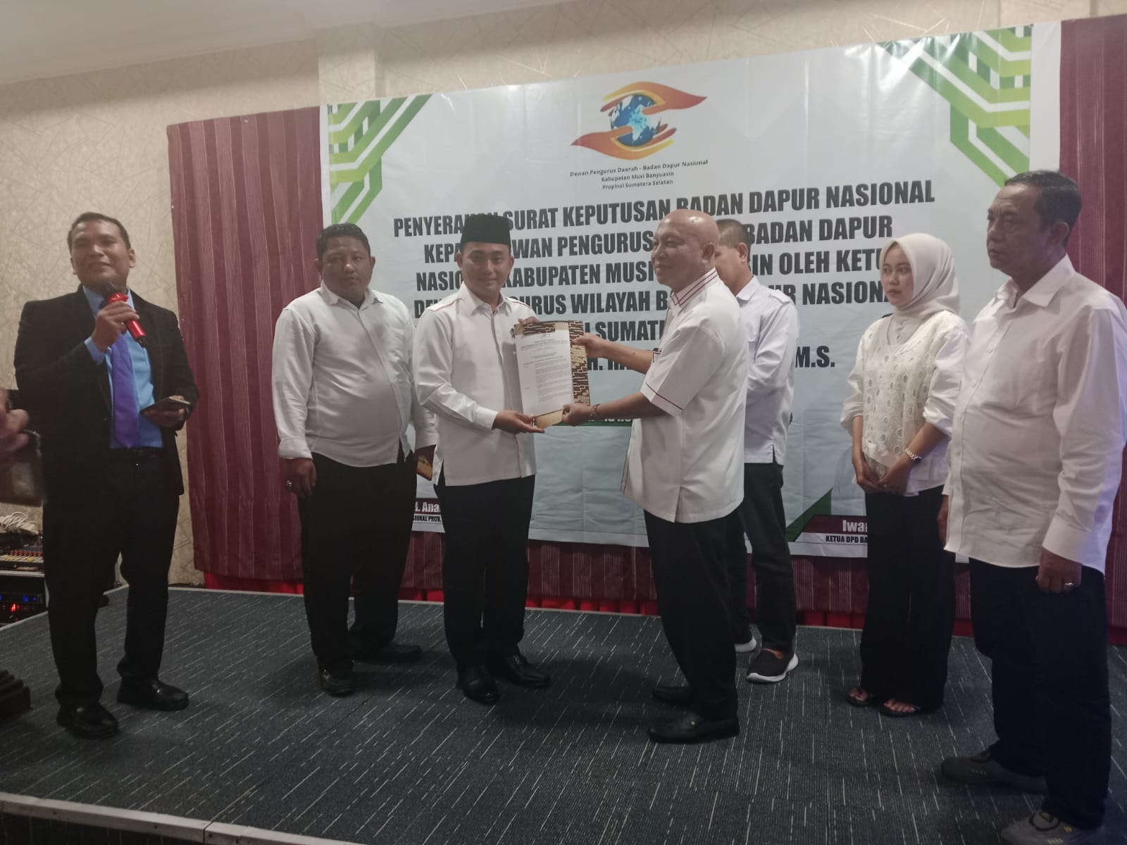 Musi Banyuasin, Barometer99.com – Sabtu 17/01/2026 Dalam Rangka penyerahan surat keputusan Badan Dapur Nasional Kabupaten Musi Banyuasin oleh ketua Dewan pengurus wilayah Badan Dapur Nasional Provinsi Sumatera Selatan bapak DR. IR. H. Rahidin H. Anang. M. S Kepada iwan Aldes S.Sos.M.si di Hotel Grand Ranggonang Jl. Merdeka LK II No.245, Balai Agung, Kecamatan Sekayu, Kabupaten Musi Banyuasin, Sumatera-Selatan