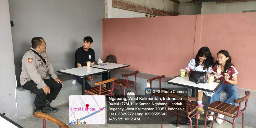 Barometer99.com / Polsek Ngabang, Polres Landak – Polda Kalbar, Patroli dialogis dengan berjalan kaki ditempat-tempat masyarakat yang sedang melaksanakan aktivitas, Langkah ini bertujuan agar setiap informasi atau permasalahan di lingkungan masyarakat dapat segera diketahui dan ditindaklanjuti oleh aparat kepolisian. itu merupakan Strategi pihak Kepolisian khususnya Polsek Ngabang Untuk menciptakan situasi yang kondusif ditengah masyarakat. Minggu, (14/12/2025)