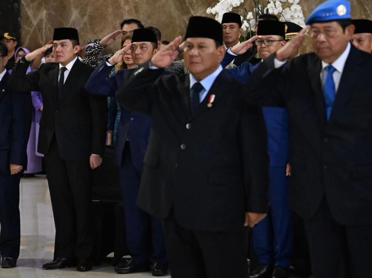 Prosesi penghormatan terakhir turut dihadiri oleh Prabowo Subianto sebagai bentuk penghormatan negara kepada para prajurit yang telah gugur dalam tugas.