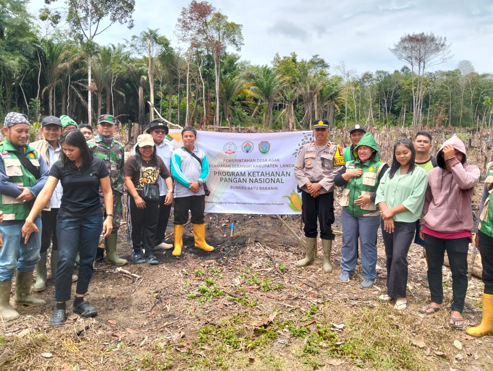 Polsek Sebangki~ Polres Landak ~ Polda Kalbar, Barometer99.com ~ Upaya memperkuat ketahanan pangan terus digencarkan di wilayah hukum Polres Landak. Hal ini terlihat dari kehadiran Kapolsek Sebangki Ipda Rudiyansah dalam kegiatan penanaman jagung seluas kurang lebih 5 hektare yang dilaksanakan di lahan BUMDes Batu Babanir, Dusun Punyanget, Desa Agak, Kecamatan Sebangki, Rabu (18/2/2026).