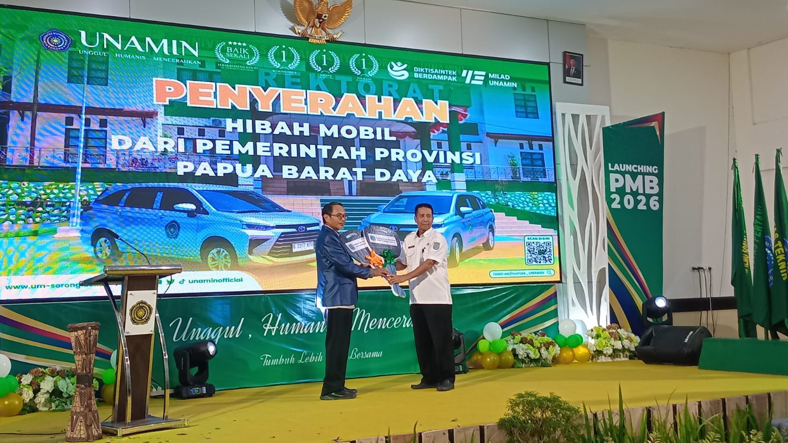 Dalam kesempatan tersebut, Pemprov Papua Barat Daya menyerahkan dua unit mobil operasional berukuran kecil yang difokuskan untuk mendukung aktivitas perkantoran. Pemerintah menegaskan bahwa kendaraan tersebut tidak diperuntukkan sebagai sarana transportasi mahasiswa, melainkan untuk menunjang kelancaran tugas-tugas administratif dan operasional lembaga.