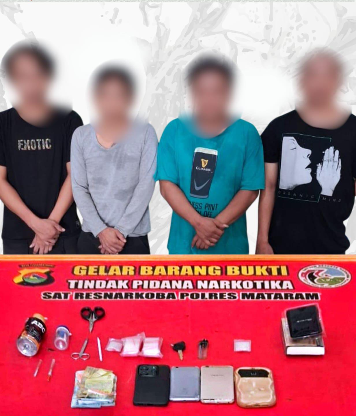 Mataram, Barometer99.com- Di tengah suasana Lebaran yang identik dengan silaturahmi, empat pria di Kota Mataram justru harus berurusan dengan aparat Kepolisian. Mereka adalah PA, BA, MK, dan MH, yang diamankan Tim Opsnal Satresnarkoba Polresta Mataram, Rabu siang (25/03/2026), atas dugaan keterlibatan dalam penyalahgunaan dan peredaran gelap Narkotika.