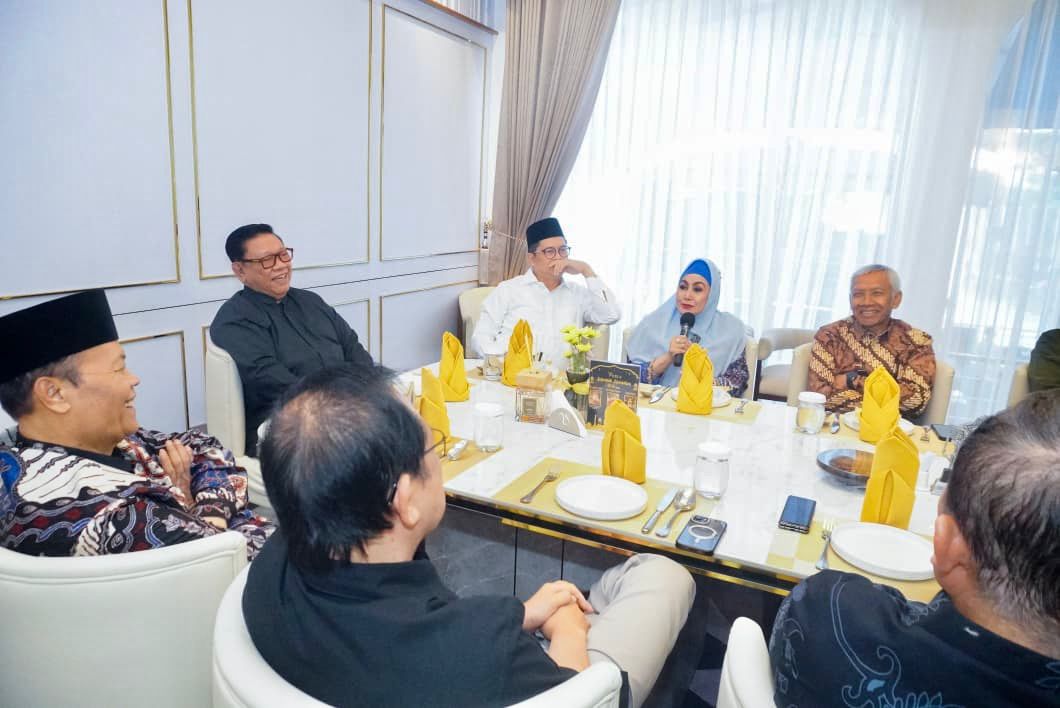 Sejumlah Pimpinan MPR dan DPR periode 1999-2024 hadir dalam silaturahmi dan buka puasa bersama para pimpinan MPR dan DPR periode 1999-2024 di Parle Resto Jakarta, Minggu malam (8/3/26). Antara lain, Bambang Soesatyo, Agung Laksono, Marzuki Ali, Hidayat Nur Wahid, Mahyudin, Melani Leimena Suharli, Agus Hermanto, Lukman Hakim Saifuddin, Amir Uskara, Ahmad Basarah, Priyo Budi Santoso, Arsul Sani dan Rachmat Gobel. Hadir pula anggota DPR RI Robert Kardinal.