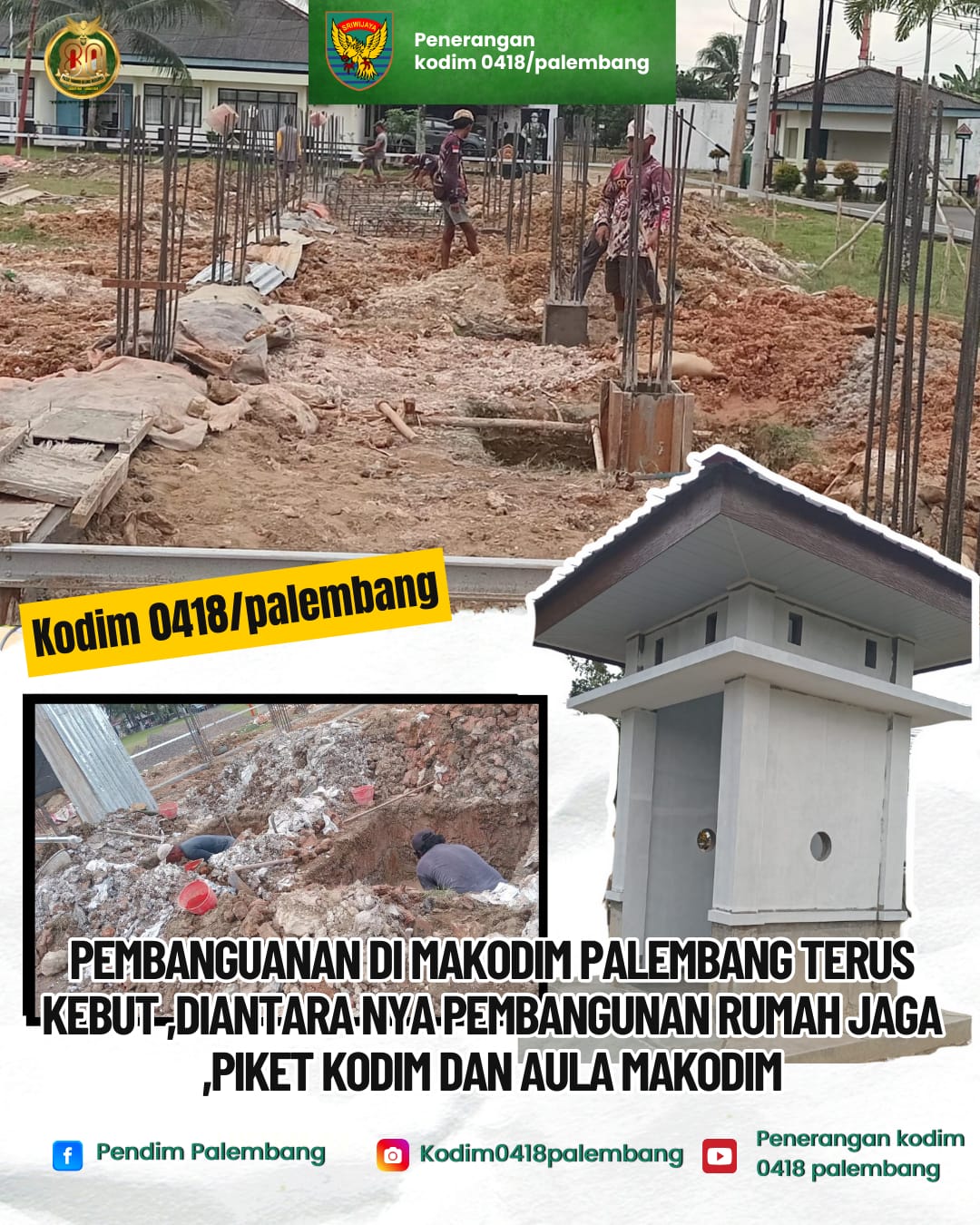 Hampir Rampung, Pos Jaga Kodim 0418/Palembang ,Rumah piket kkdim dan Gedung Serba Guna yang baru 30 Persen