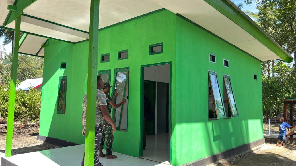 Kaimana PB, Barometer99.com – Program TNI Manunggal Membangun Desa (TMMD) ke-127 yang dilaksanakan oleh Kodim 1804/Kaimana, Kodam XVIII/Kasuari terus menunjukkan progres signifikan, Selasa (03/03/2026), Satgas TMMD kembali melaksanakan kegiatan pemasangan kaca jendela pada rumah milik Ibu Evelina Surawi, salah satu penerima manfaat program TMMD di Kampung Sisir, Distrik Kaimana, Kabupaten Kaimana.