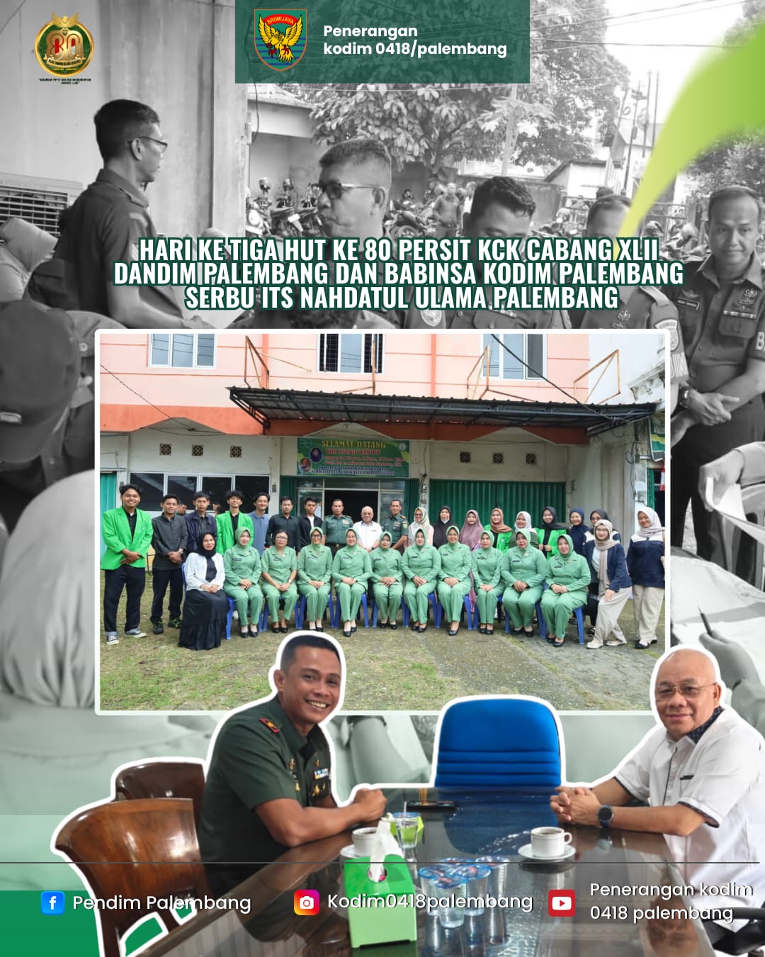 Kegiatan ini dihadiri langsung Dandim 0418/Palembang Letkol Arh Erik Novianto, S.Sos, para Perwira Staf, para Danramil jajaran, anggota Bintara, Tamtama, PNS dan Persit Kodim 0418/Palembang, tim PMI Kota Palembang, serta Mahasiswa dan Mahasiswi ITSNU.