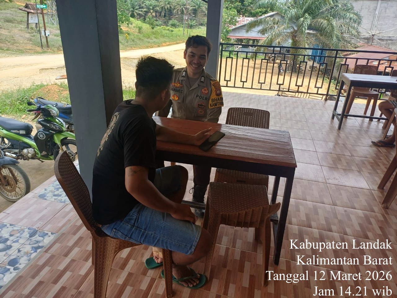 Polsek Meranti ~ Polres Landak ~ Polda Kalbar, Barometer99.com ~ Kamis (12/3/2026) suasana siang di wilayah Kecamatan Meranti terlihat berbeda. Kehadiran personel kepolisian yang melaksanakan patroli siang hari tidak hanya sekadar menjaga situasi keamanan, tetapi juga menjadi momen kedekatan antara polisi dan masyarakat.