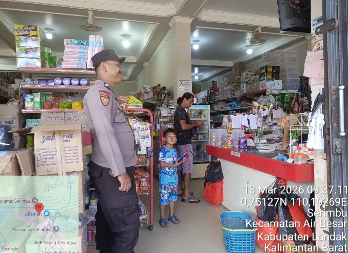 Polsek Air Besar ~ Polres Landak ~ Polda Kalbar, Barometer99.com ~ Dalam rangka menjaga situasi keamanan dan ketertiban masyarakat tetap kondusif, personel Polsek Air Besar melaksanakan patroli siang hari dengan menyambangi sejumlah toko dan pusat aktivitas masyarakat di wilayah Kecamatan Air Besar, Jumat (13/3/2026).