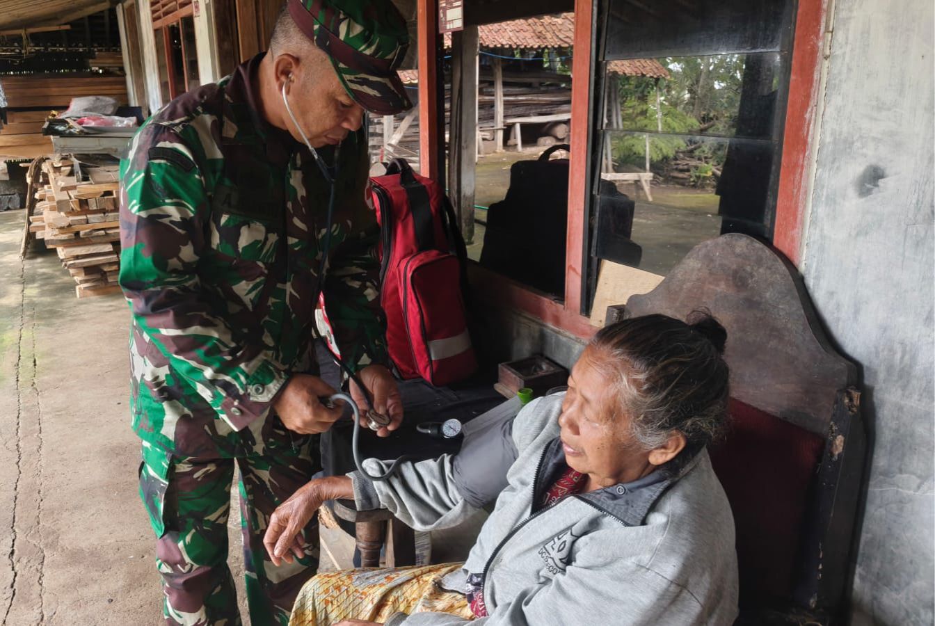 Salah satu momen mengharukan terjadi saat Pelda Agung Iriyanto bersama tim kesehatan bergerak cepat mendatangi rumah seorang warga lanjut usia yang dilaporkan sedang sakit.