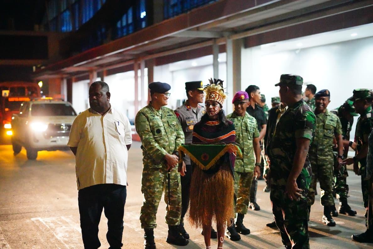 Acara penyambutan berlangsung di area VIP bandara dengan penuh kehangatan dan kebersamaan. Momen ini mencerminkan sinergi yang erat antara TNI, POLRI serta pemerintah daerah dalam mendukung tercapainya stabilitas dan kemajuan di wilayah Papua Barat Daya.