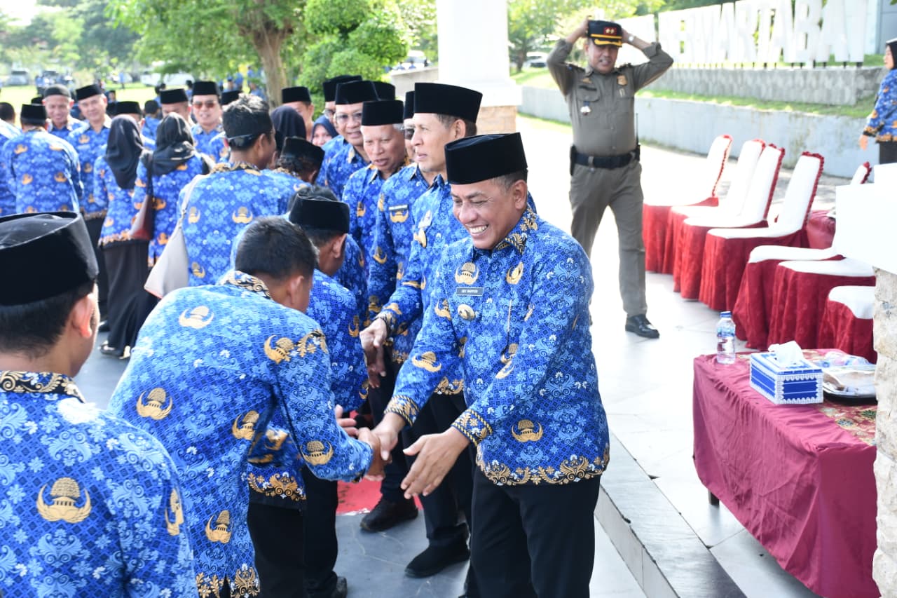 Dalam menyambut datangnya Bulan Suci Ramadan 1447 Hijriah, silaturahmi di antara para pejabat struktural, pejabat fungsional dan staf perangkat daerah berlangsung usai pelaksanaan apel.