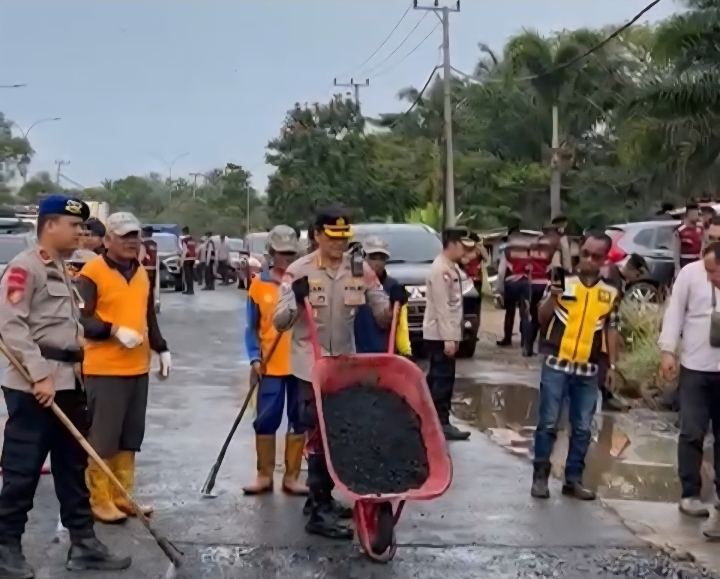 Sementara itu di Kabupaten Ogan Komering Ilir, Kapolres OKI AKBP Eko Rubiyanto memimpin kegiatan perbaikan jalan di Simpang Tiga Akses Tol Kayuagung, Desa Celikah.