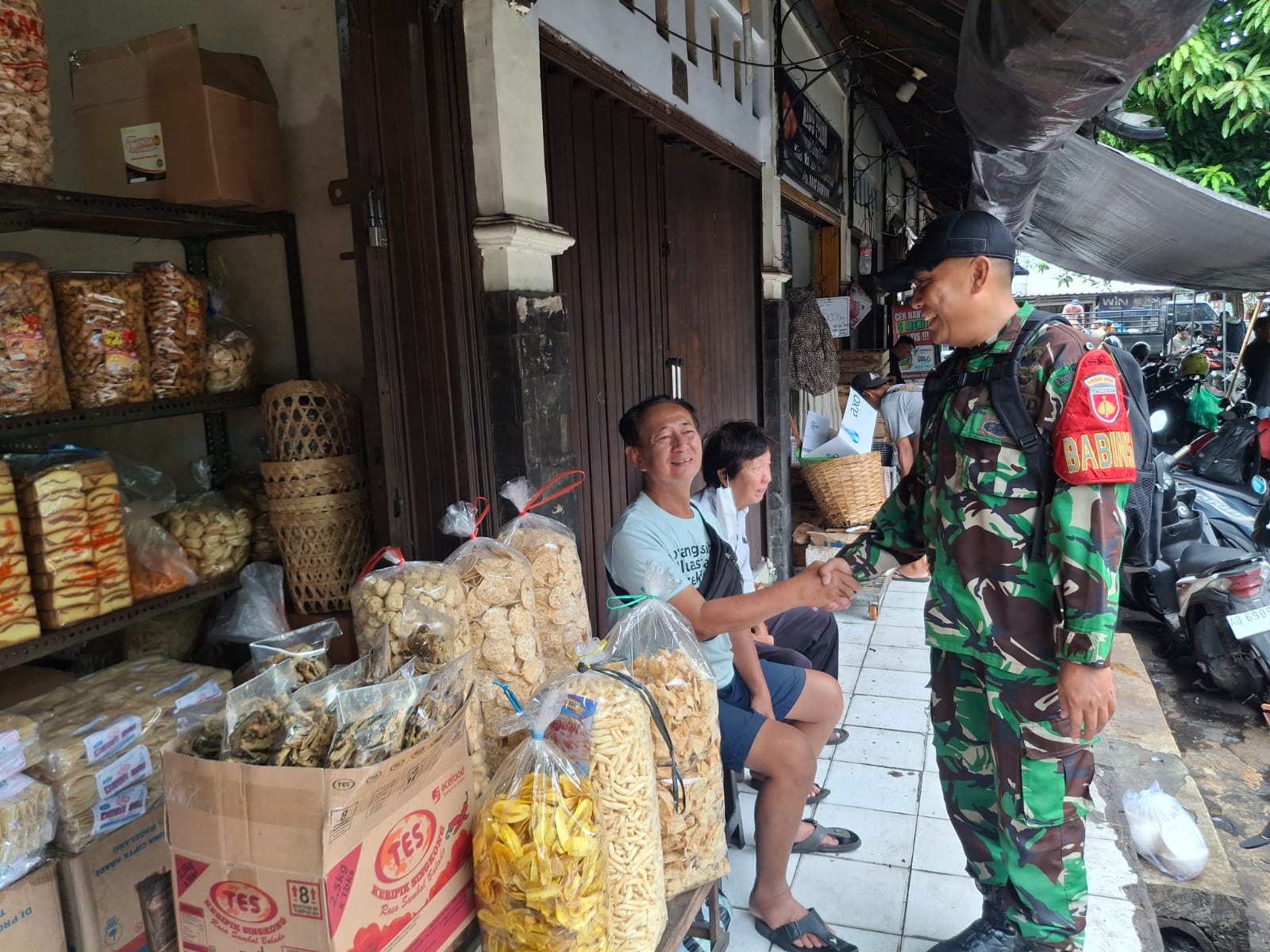 Dalam kesempatan ini Babinsa mengajak Para Pedagang, karena ini sudah musim penghujan agar selalu menjaga kebersihan terutama sampah harus dipastikan dibuang ditempat sampah sehingga masyarakat dan pedagang merasa nyaman di saat melakukan transaksi jual beli.
