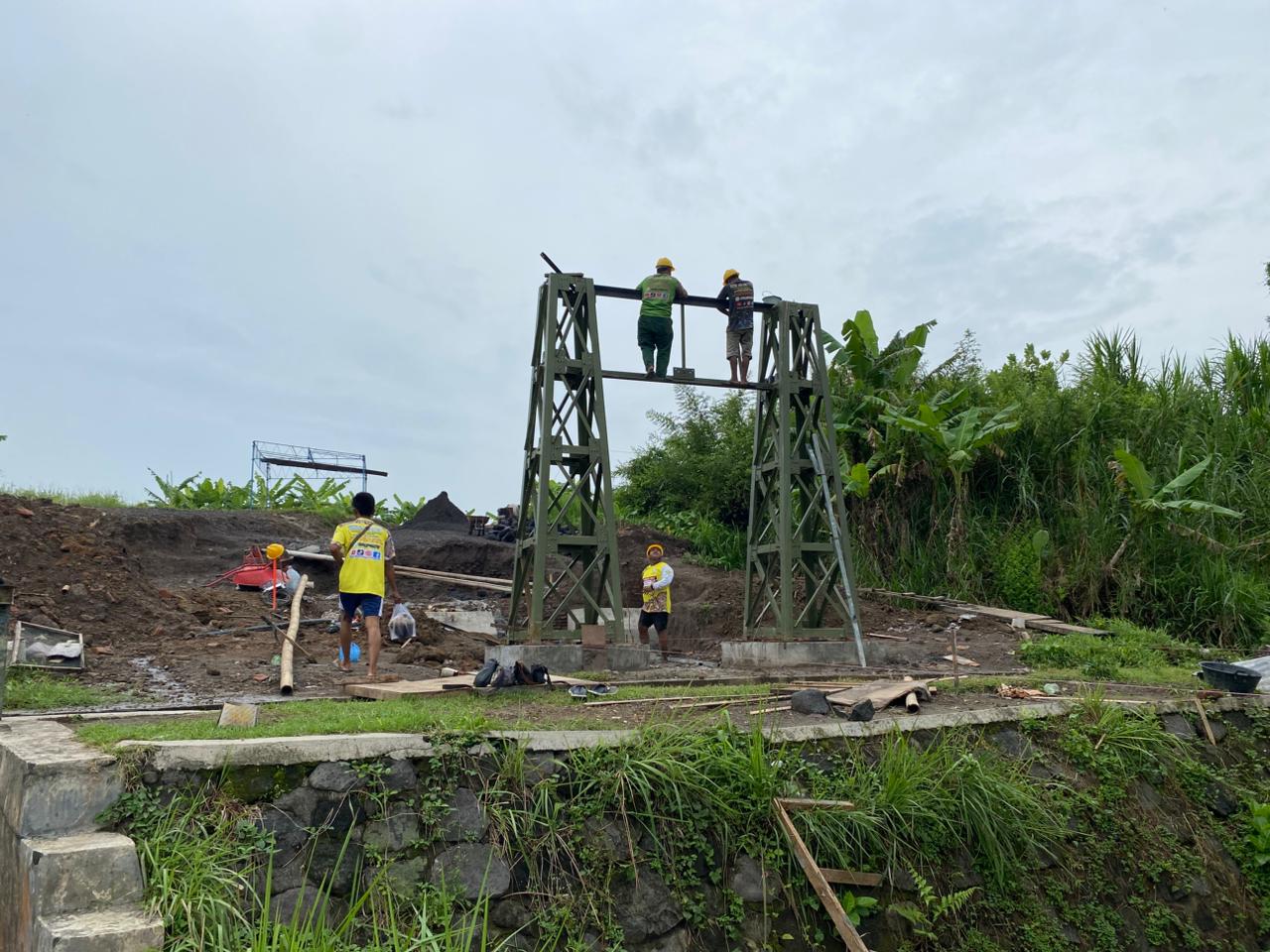 “Pembangunan Jembatan Gantung Garuda ini merupakan wujud nyata kepedulian pemerintah terhadap kebutuhan dasar masyarakat di pedesaan dan sudah memasuki tahap pengecoran dan pemasangan menara Pylon Sebelah Timur jembatan sehingga baik menara Pylon Sebelah Barat maupun sebelah Timur sudah terpasang semuanya ini menjadi titik krusial karena merupakan struktur utama yang akan menopang beban kabel dan bentang jembatan,”ujarnya.(Pendim 0732/Sleman)