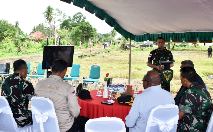 Nampak hadir para pejabat Kodam XXIV/Mandala Trikora, Danrem 174/ATW Brigjen TNI Mustakim, S.I.P., M.Si., Kasi Keterpaduan Pembangunan BWS Papu Selatan Quentino Elgar dan Kepala Kampung Chandra Jaya Bapak Aris.