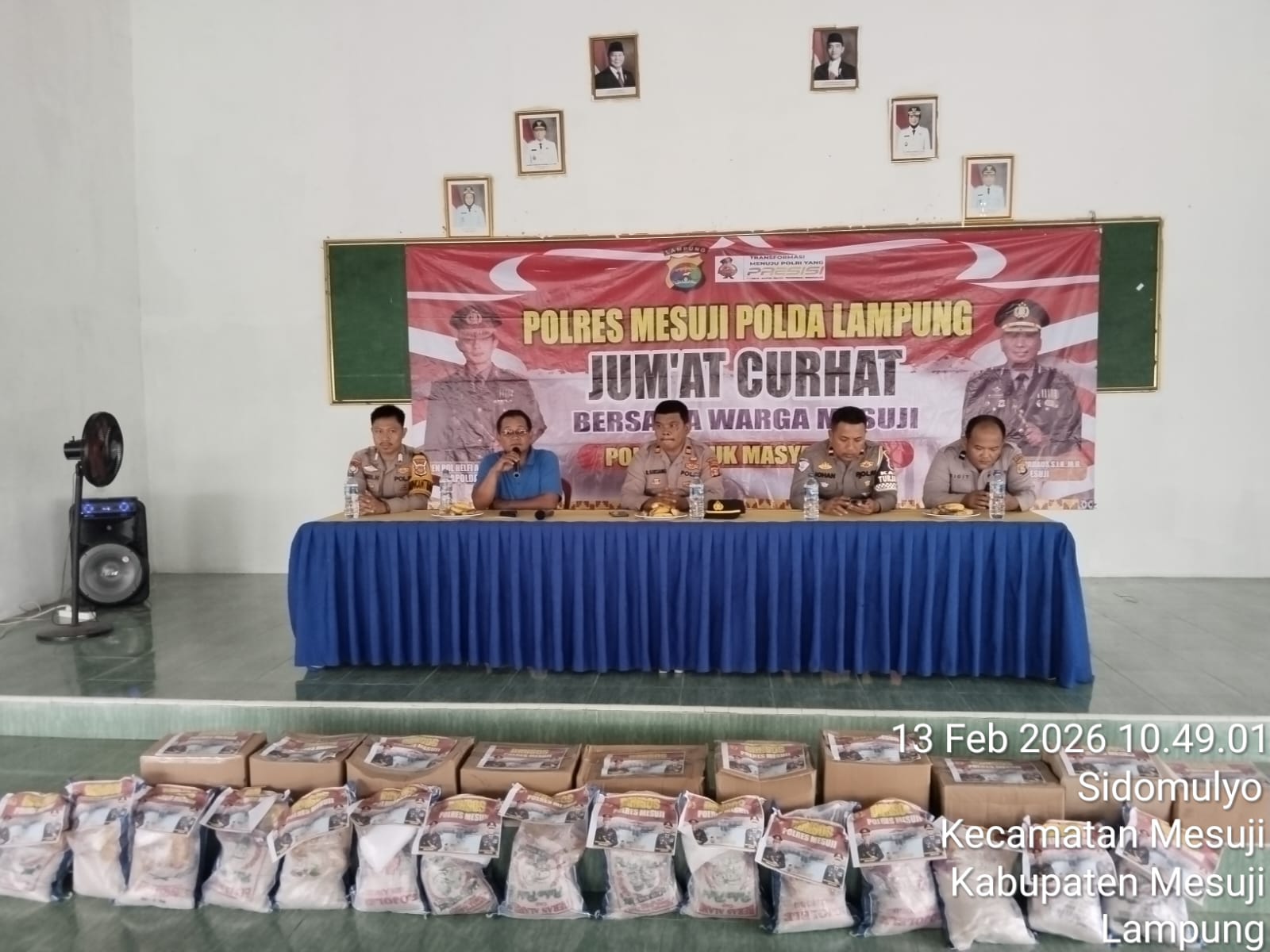 Mesuji, Lampung, Barometer99.com -Jajaran Polres Mesuji melaksanakan kegiatan “Jumat Curhat” di Desa Sido Mulyo Kecamatan Mesuji Kabupaten Mesuji dan sekaligus berikan bantuan sembako kepada warga kurang mampu.