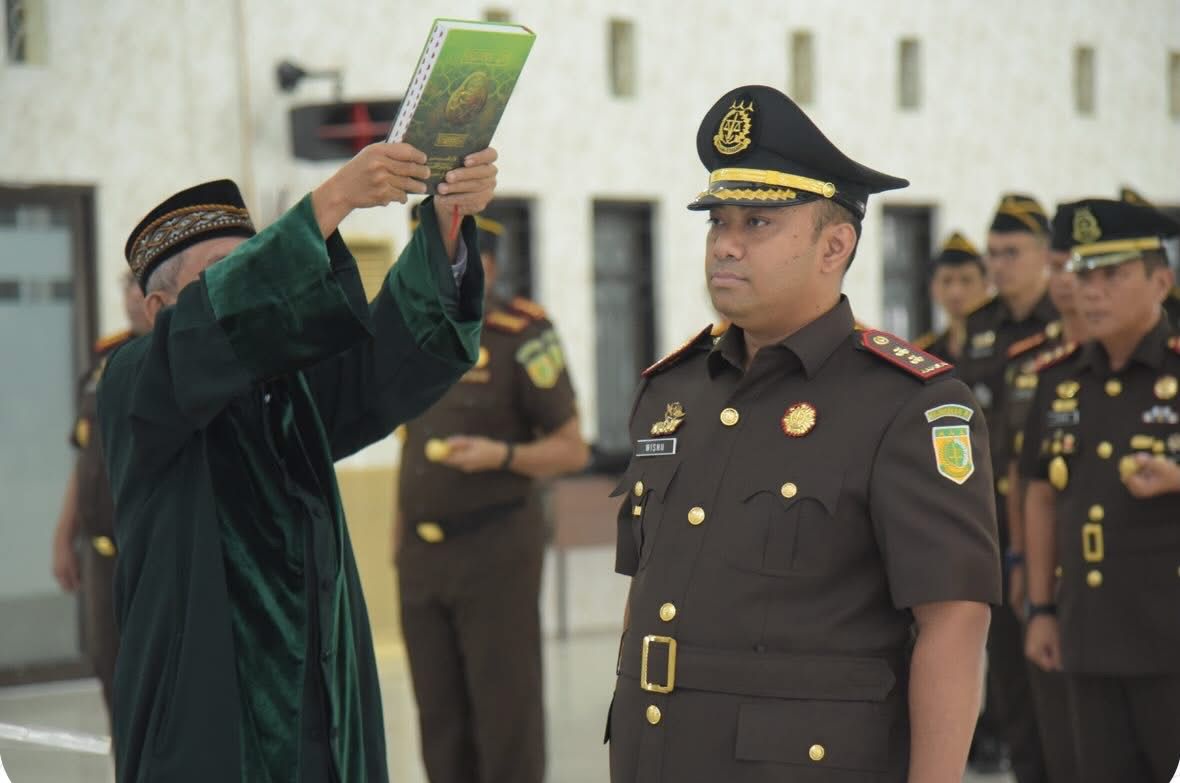 Banda Aceh, Barometer99.com — Kepala Kejaksaan Tinggi Aceh Yudi Triadi, secara resmi melantik dan mengambil sumpah jabatan Wisnu Murtopo Nur Muhamad, S.H., M.H., sebagai Kepala Kejaksaan Negeri Aceh Besar. Prosesi pelantikan berlangsung di Aula Kejaksaan Tinggi Aceh, Senin (02/03/2026).