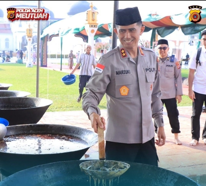 Kepala Bidang Humas Polda Aceh Kombes Pol Joko Krisdiyanto, S.I.K., dalam keterangannya pada Sabtu (7/3/2026) menyampaikan bahwa Kapolda Aceh hadir dan berinteraksi langsung dengan masyarakat di area memasak kuah beulangong sebelum kegiatan khanduri dimulai.