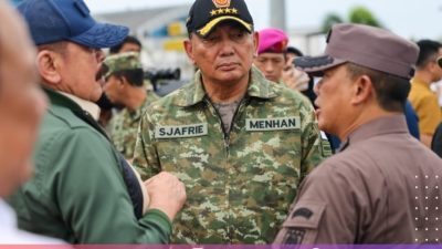 Singkil – Kapolda Aceh Irjen Pol. Marzuki Ali Basyah bersama Wakil Gubernur Aceh Fadhlullah, yang akrab disapa Dek Fad, serta Kepala Badan Nasional Penanggulangan Bencana (BNPB) Letjen TNI Suharyanto tiba di Bandara Syekh Hamzah Fansyuri Aceh Singkil, Kamis, 4 Desember 2025.