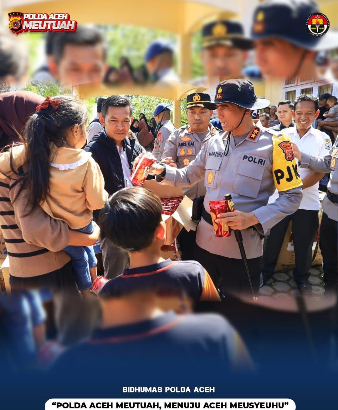 Kabid Humas Polda Aceh Kombes Pol. Joko Krisdiyanto, S.I.K., mengatakan bahwa di sela-sela penyerahan bantuan, Kapolda Aceh secara langsung berinteraksi dengan anak-anak pengungsi.