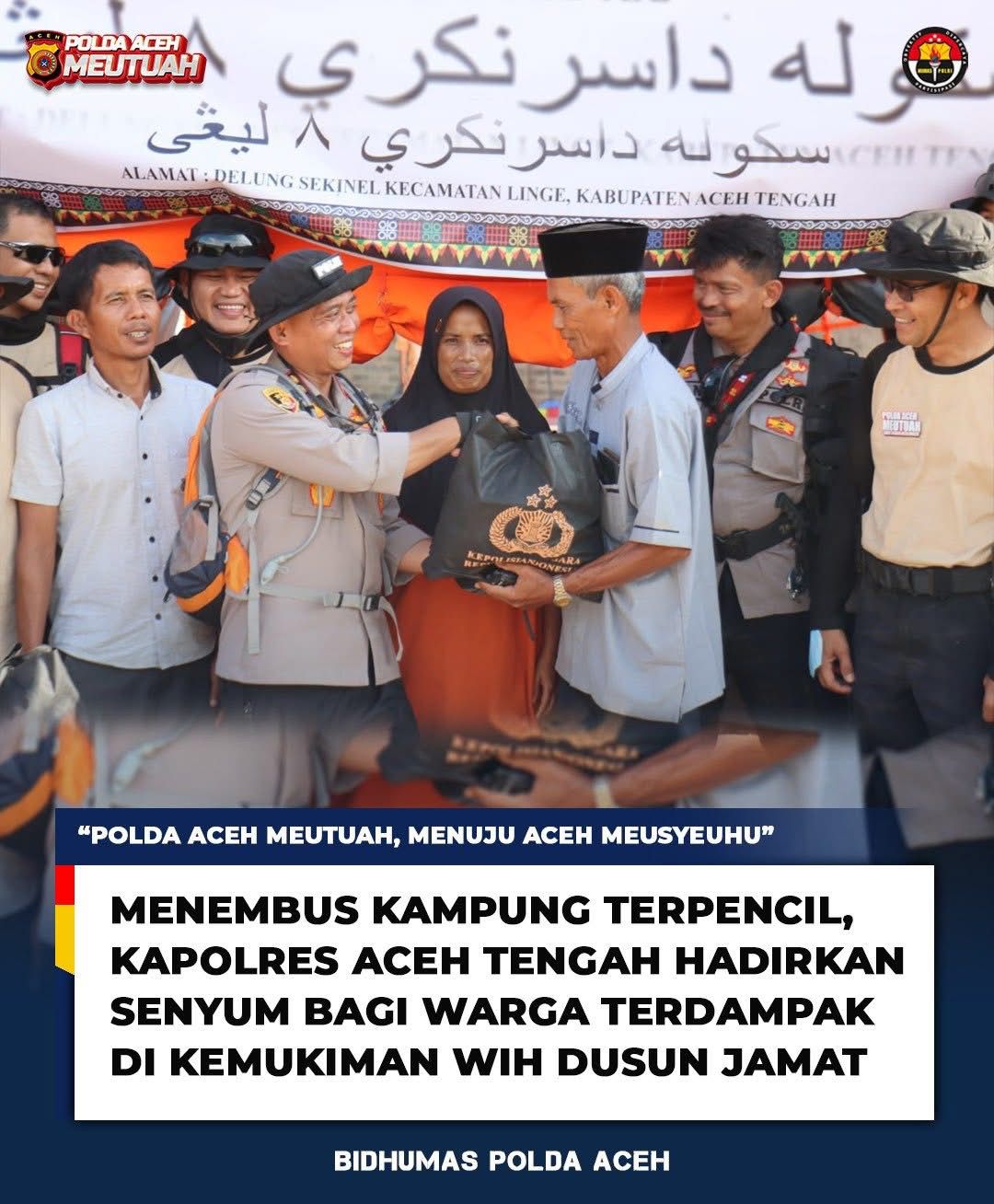 Kunjungan tersebut dilakukan pada Rabu (14/1/2026) untuk menyalurkan bantuan logistik serta memberikan pelayanan kesehatan kepada masyarakat terdampak banjir bandang dan tanah longsor. Kegiatan kemanusiaan ini menyasar sejumlah kampung di wilayah Kemukiman Wih Dusun Jamat, yaitu Kampung Linge, Jamat, Reje Payung, Delung Sekinel, dan Kampung Kute Reje. Selain memberikan bantuan, Kapolres juga berdialog langsung dengan warga untuk mendengarkan kondisi serta kebutuhan mereka pascabencana.