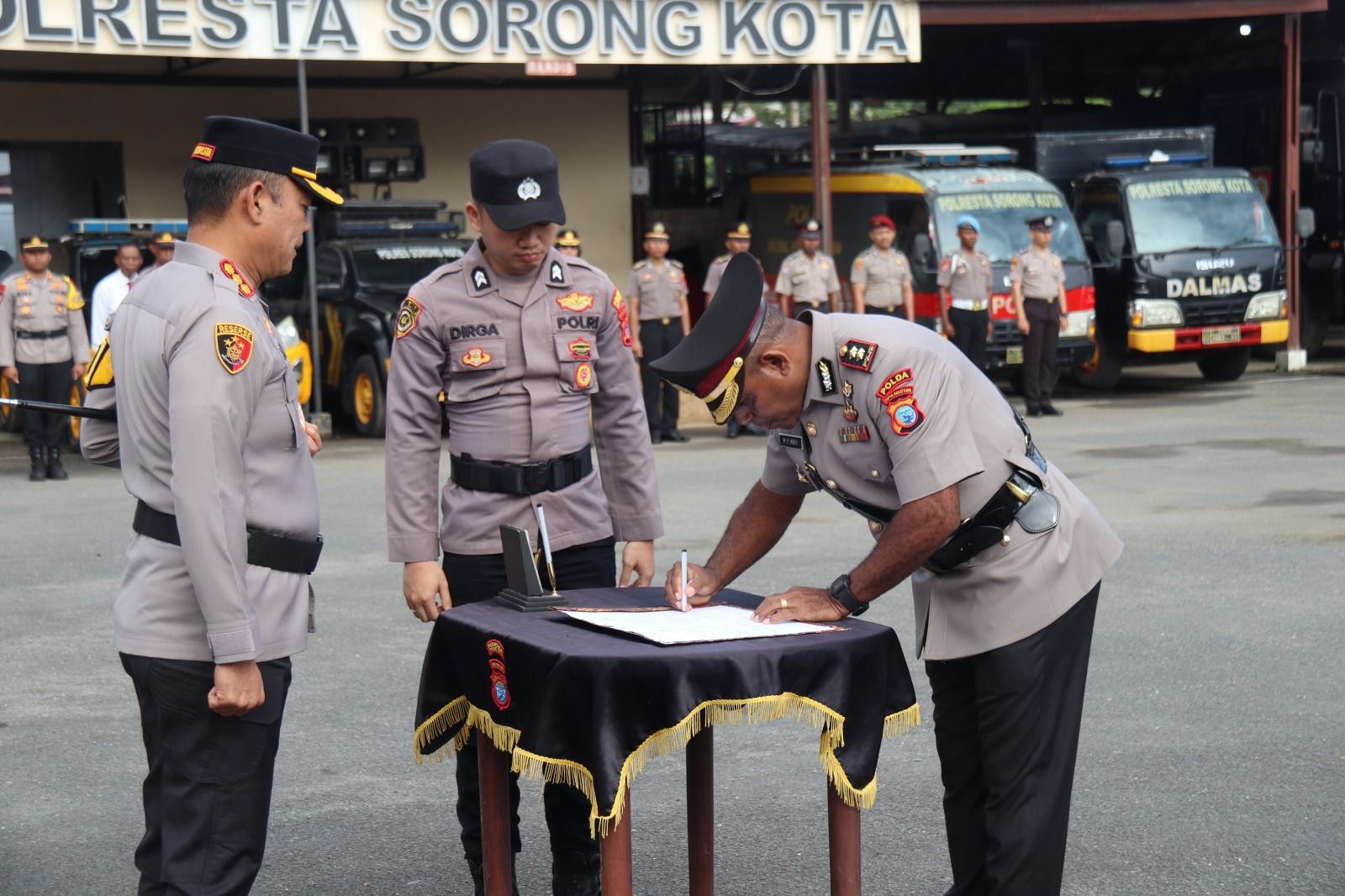 Transisi Jabatan Wakapolresta Salah satu agenda utama adalah penyerahan jabatan Wakapolresta Sorong Kota dari AKBP Mathias Yosia Krey, S.Pd.. AKBP Mathias Yosia Krey kini mengemban amanah baru sebagai Kabid Propam Polda Papua Barat Daya. penyerahan Jabatan Wakapolresta Sorong Kota ditandai dengan penanggalan tanda jabatan oleh Inspektur Upacara dan penandatanganan naskah berita acara penyerahan jabatan.