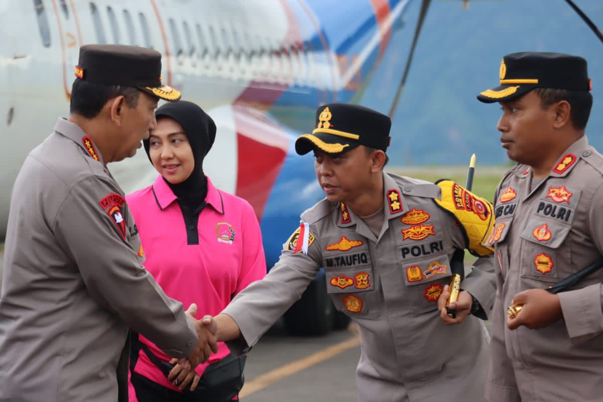 Kapolres Bener Meriah AKBP Aris Cai Dwi Susanto menyambut kunjungan di Bandara Rembele