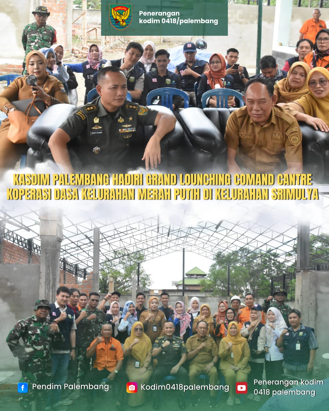 Kepala Staf Kodim 0418/Palembang, Letkol Inf Dery Septriandi, S.T., M.M., M.Han, menghadiri kegiatan Grand Launching Command Centre Koperasi Desa/Kelurahan Merah Putih yang digelar di Kelurahan Srimulya, Kecamatan Sako, Kota Palembang, Senin (15/12/2025).