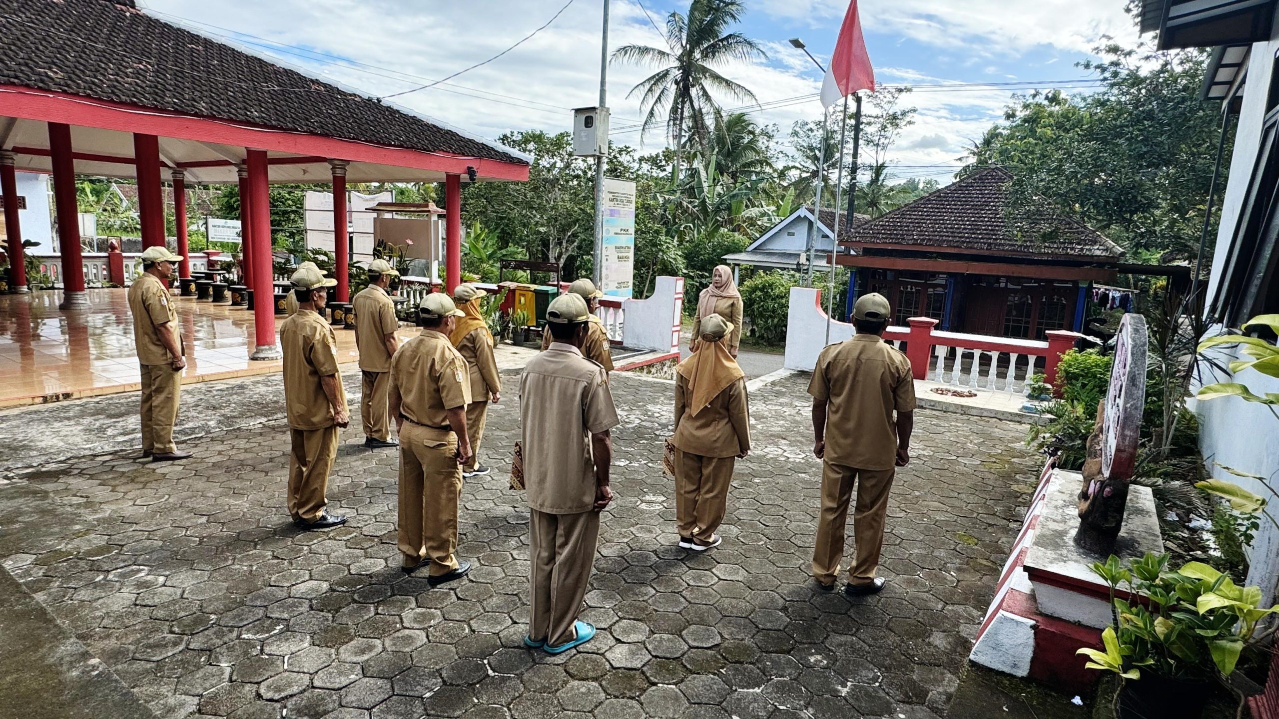 Apel pagi yang digelar di halaman Kantor Desa Tlogosari ini diikuti oleh seluruh perangkat desa, mulai dari sekretaris desa, kepala urusan, kepala seksi, hingga staf desa. Kegiatan rutin ini bertujuan untuk meningkatkan kedisiplinan, kekompakan, serta memperkuat koordinasi antarperangkat desa dalam menjalankan roda pemerintahan dan pelayanan publik.