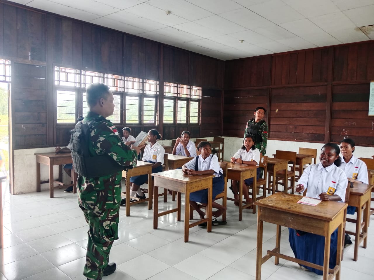 AROBA, Barometer99.com, 27 Januari 2026 – Dalam rangka mendukung peningkatan kualitas pendidikan di wilayah perbatasan, Sertu sukiswandi Selaku wadanpos Satgas Pamtas RI–PNG Kewilayahan Yonif 410/Alugoro Pos Aroba melaksanakan kegiatan Tenaga Pendidik (Gadik) di SMP Negeri Satap Aroba, Distrik Aroba, Kabupaten Teluk Bintuni, Papua Barat., (23/1)