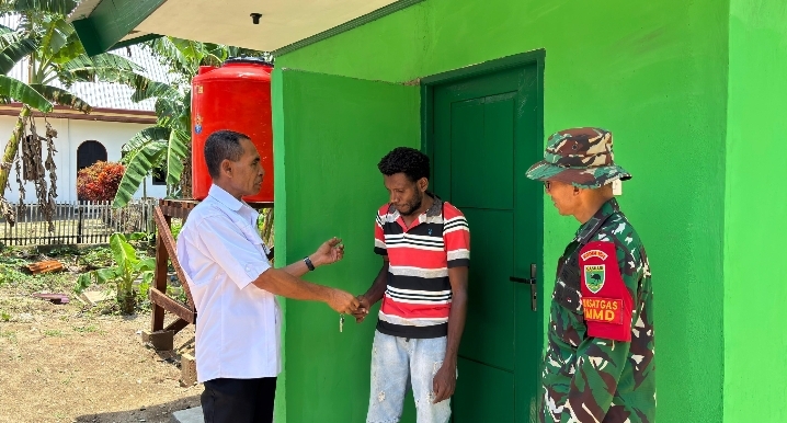 Dalam kegiatan tersebut, Agus Duwila tidak hanya melakukan pengecekan kondisi bangunan, tetapi juga secara simbolis menyerahkan kunci MCK Gereja serta MCK umum yang berada di samping rumah warga, Bapak Yosep. Fasilitas ini merupakan salah satu hasil pembangunan fisik TMMD ke-127 yang ditujukan untuk meningkatkan kualitas sanitasi dan kesehatan masyarakat di Kampung Sisir.