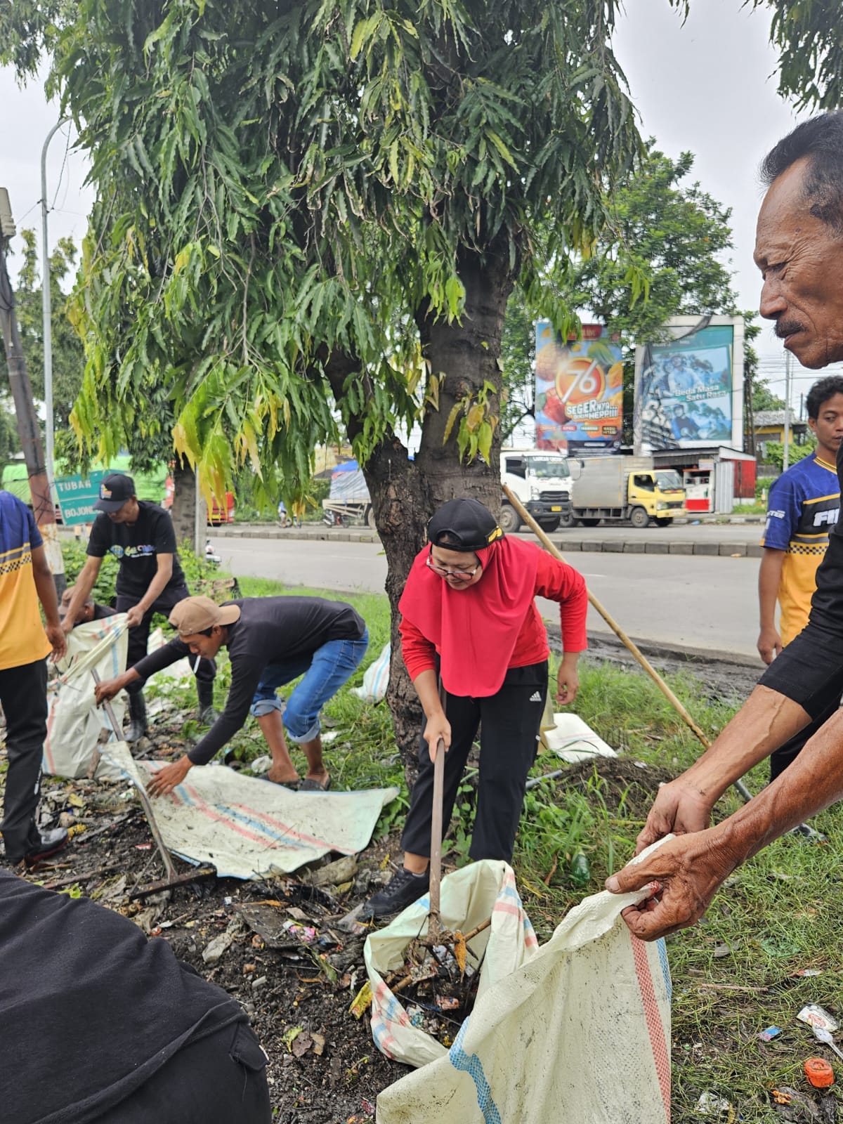 ​Aksi bersih-bersih ini dilakukan bersama Tim Relawan Ngaos Sae Wiyoto, pengurus PAC, Ranting, hingga Anak Ranting PDI Perjuangan Kelurahan Babat. Hadir pula Lurah Babat Anton serta tim kebersihan dari Dinas Lingkungan Hidup (DLH) Lamongan.