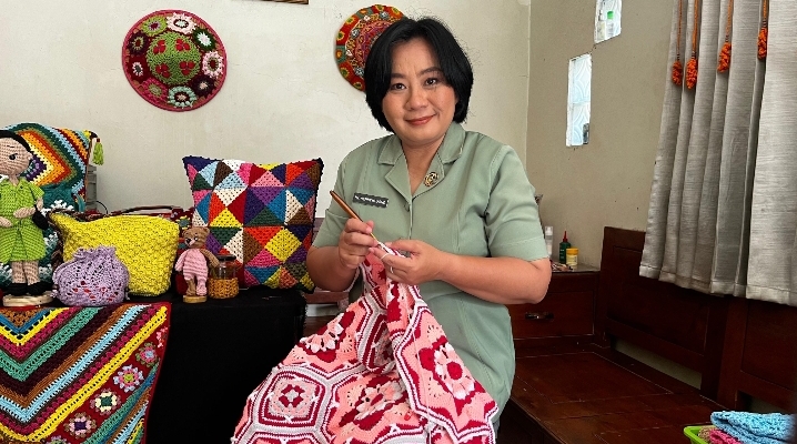 “Awal tinggal di asrama saya mencoba berbagai macam ketrampilan mulai dari menyulam, kristik, menjahit bahkan memasak. Yang tujuan awalnya untuk mengisi waktu, Sampai akhirnya mulai mengingat lagi ketrampilan merajut yang sudah saya kenal sejak dr masa sekolah di SMP.”tuturnya.