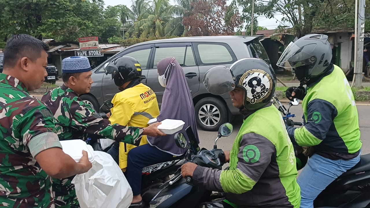 Pembagian makanan dilakukan langsung oleh personel Kodim 0418/Palembang dengan cara menyapa masyarakat secara humanis di jalan raya sekitar Makodim.