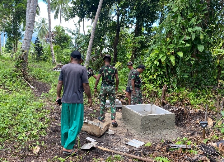 Salah satu titik pengerjaan yang menjadi fokus utama berada di depan rumah Ibu Evelina Surawi, penerima manfaat program rumah layak huni dalam kegiatan TMMD kali ini. Pembangunan sumur tersebut ditujukan untuk memenuhi kebutuhan air bersih keluarga serta masyarakat sekitar.