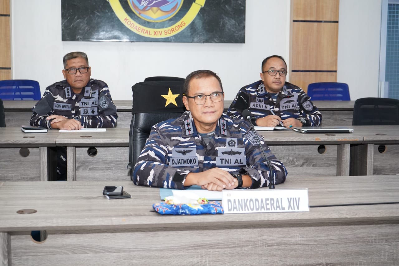 Sorong PBD, Barometer99.com – Bertempat di Ruang Vicon Mako Kodaeral XIV, secara virtual, Komandan Komando Daerah TNI Angkatan Laut XIV (Komandan Kodaeral XIV), Laksamana Muda TNI Djatmoko, S.T., M.M., CHRMP yang didampingi Inspektur Kodaeral XIV, Kolonel Laut (S) Agus Wahyu Nugraha, S.E.,M.M., dan Irops Kodaeral XIV Letkol Laut (P) Adhi Nugroho menghadiri Taklimat Akhir Audit Ketaatan, Audit Kinerja, dan Audit Tata Kelola Itjen TNI Periode I TA 2026 di Ko/Sat TNI di wilayah Papua Barat dan Papua Barat Daya, adapun kegiatan tersebut dipusatkan dari Ruang Yudha Makodam XVIII Kasuari Manokwari yang diikuti secara virtual oleh satuan lainnya. Jumat (27/02/2026).