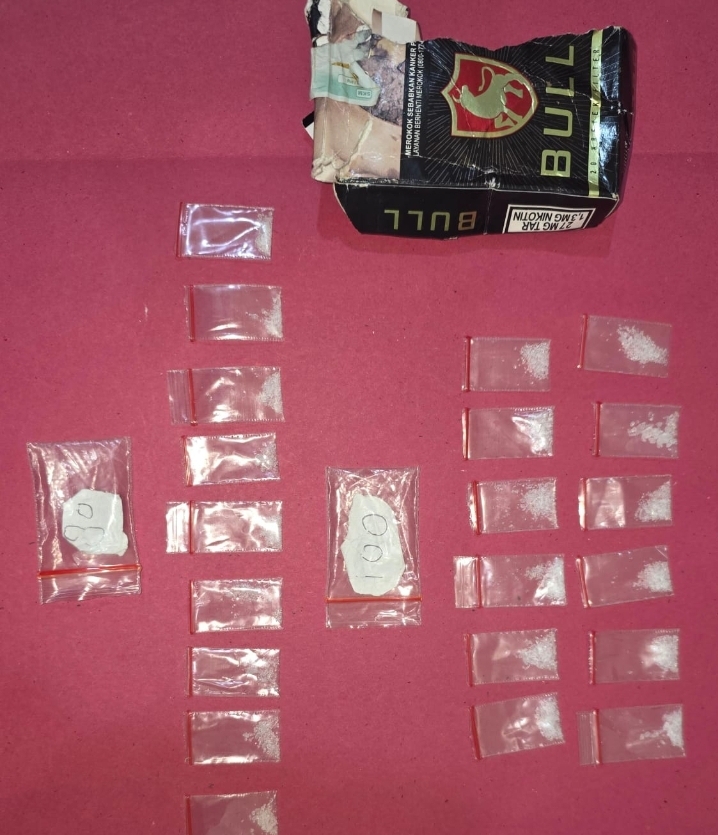 Sekira pukul 01.00 WIB, tim melakukan penggerebekan dan berhasil menangkap kedua pelaku. Barang bukti ditemukan tersimpan di dalam kotak rokok merek BULL, disertai plastik klip ukuran sedang dan catatan harga yang menguatkan dugaan peran sebagai pengedar.