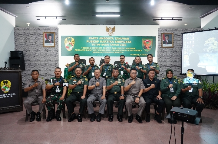 Palembang, Barometer99.com Pusat Koperasi Kartika Sriwijaya menggelar Rapat Anggota Tahunan (RAT) Tutup Buku Tahun 2025 bertempat di Aula Puskop Kartika Sriwijaya, Jln. Demang Lebar Daun, Palembang, Kamis (05/02/2026). Kegiatan ini dipimpin oleh Kapoksahli Pangdam II/Sriwijaya, Brigjen TNI Junaidi M., S.Sos., M.Si., yang hadir mewakili Pangdam II/Sriwijaya untuk mengevaluasi sekaligus merancang strategi pengembangan koperasi ke depan._