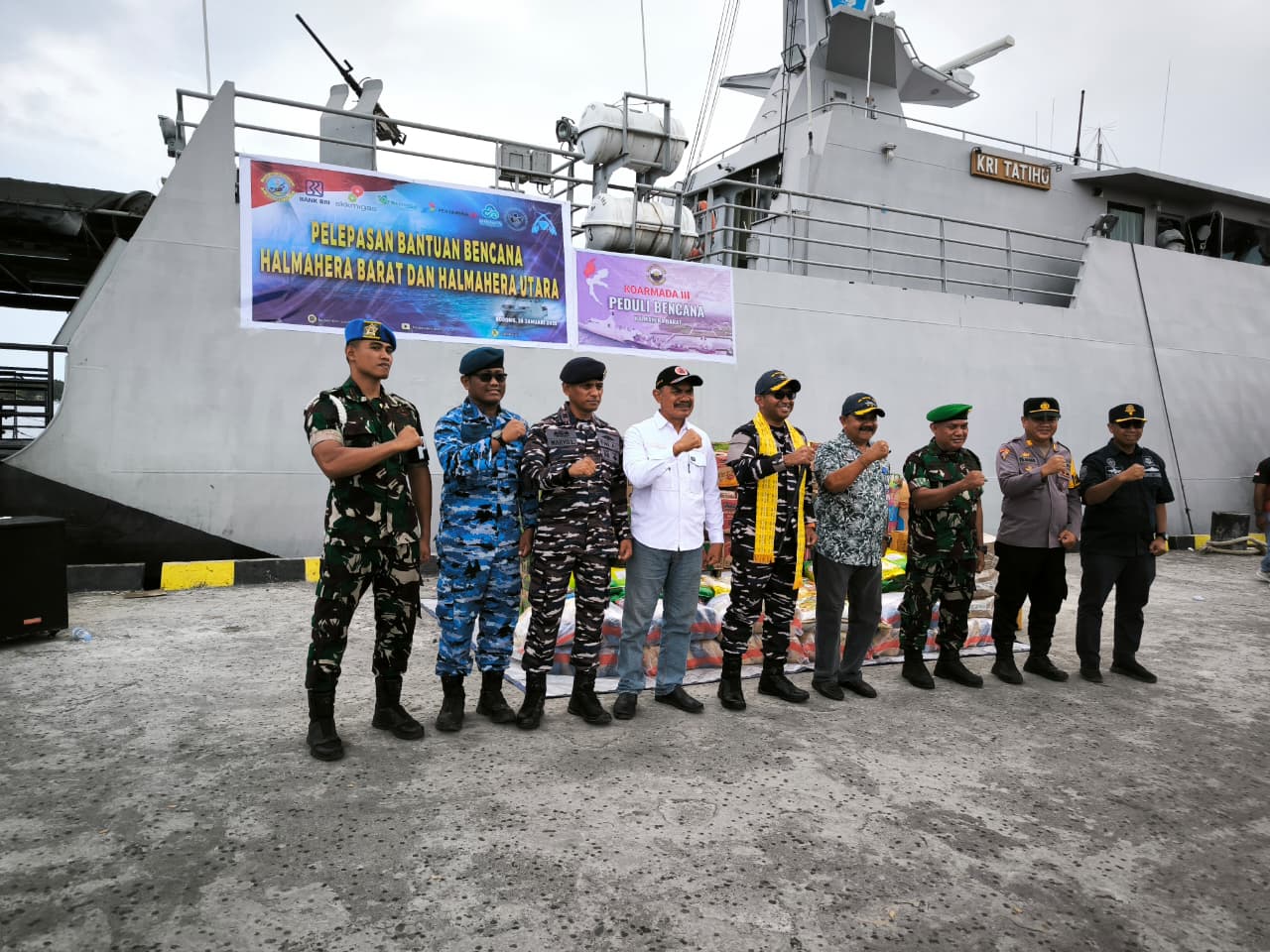 Dalam rangka mendukung upaya kemanusiaan tersebut, KRI Tatihu-853 melaksanakan pendistribusian bahan kontak berupa bantuan logistik yang diperuntukkan bagi masyarakat terdampak bencana. Bahan kontak tersebut berasal dari Komando Daerah Angkatan Laut (Kodaeral) XIV serta Pemerintah Kabupaten Sorong sebagai wujud kepedulian dan sinergi antarinstansi dalam membantu korban bencana alam.