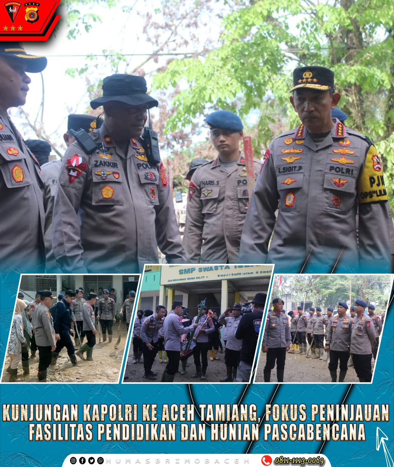 Turut hadir mendampingi Kapolri dalam kunjungan kerja tersebut Dankor Brimob Polri, Komjen Pol. Ramdani Hidayat, S.H., bersama pejabat utama Polri dan unsur terkait lainnya. Kunjungan ini menjadi wujud nyata kepedulian dan sinergi Polri dalam mendukung pemulihan kehidupan masyarakat serta peningkatan kualitas fasilitas pendidikan di Kabupaten Aceh Tamiang.
