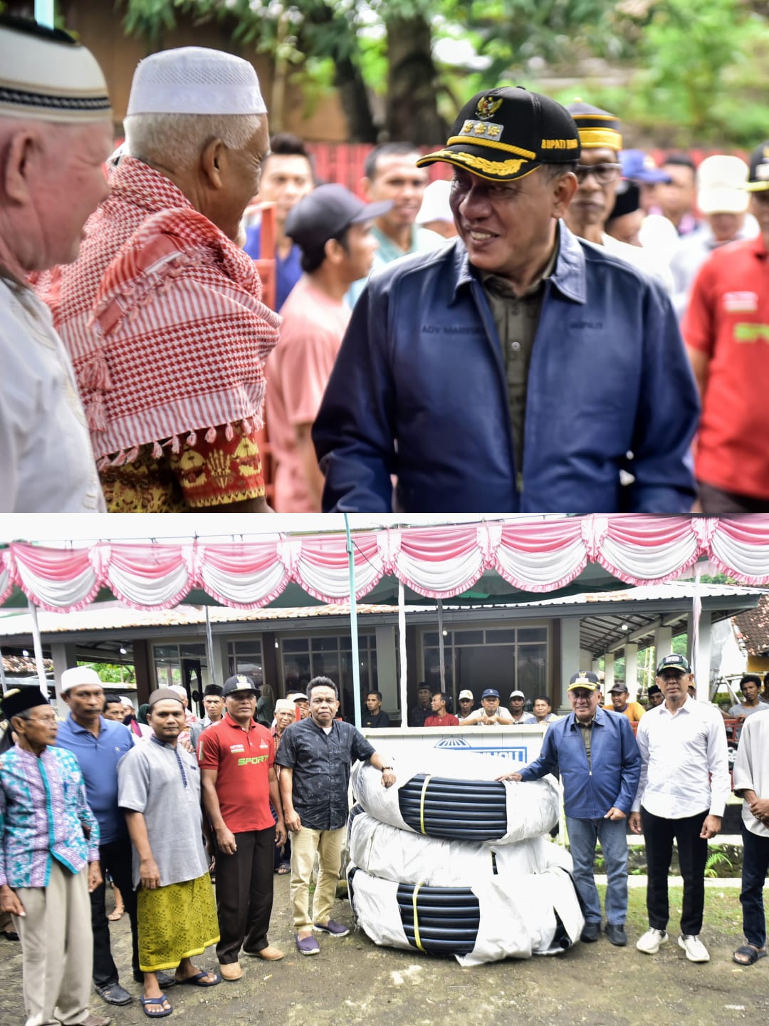 Bima, Barometer99.com- Masyarakat desa Nipa dan Desa Tolowata kecamatan Ambalawi Ahad (15/02/2026) menyambut hangat kehadiran Bupati Bima Ady Mahyudi dan Wakil Bupati dr.H. Irfan Zubaidy dan Kadis PUPR Taufik, yang berkunjung ke untuk melakukan silaturahmi dan menyerahkan bantuan berupa pipa 2.000 meter (2 km) yang merupakan aspirasi Kades dan masyarakat tersebut terdiri dari 500 meter pipa ukuran 2 inci dan 1.500 meter pipa berukuran 1,5 inci.