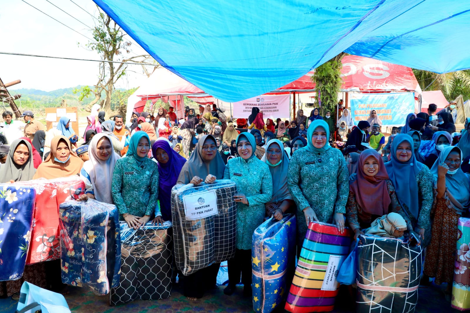 Bantuan yang diserahkan oleh TP PKK Pusat kepada 203 kartu keluarga (KK) terdata berupa perlengkapan rumah tangga dan kebutuhan sehari-hari. Bantuan tersebut di antaranya 203 paket perlengkapan ibadah, 156 paket perlengkapan sekolah, 203 unit kompor satu tungku, 45 dus minyak goreng, 173 set ember dan gayung, 15 dus sabun mandi, 15 dus sabun cuci pakaian, 173 kasur, 125 paket makanan anak-anak, 700 masker, serta 100 tumbler.