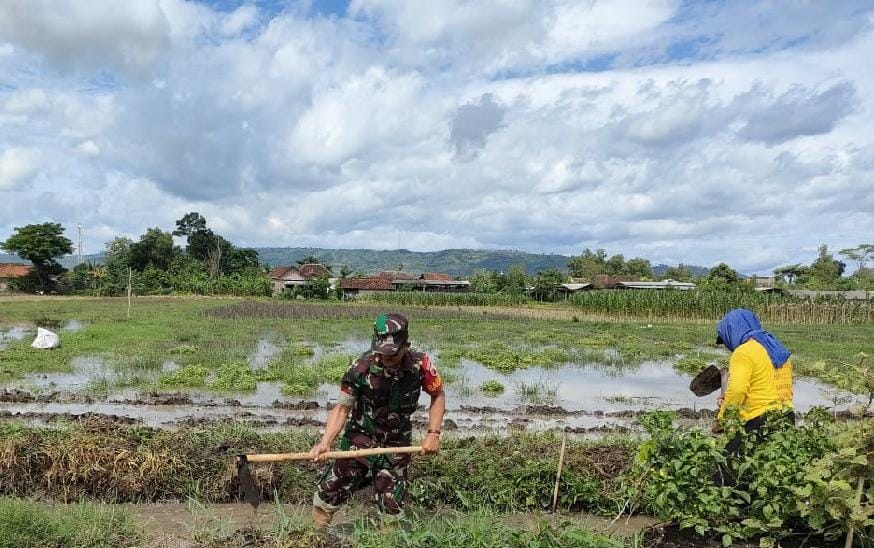 Tulungagung, Barometer99.com – Embun pagi masih menyelimuti pematang sawah saat Koptu Yudi Purwanto, Babinsa Desa Kedungwilut dari Koramil Tipe B 0807/11 Bandung, turun langsung ke lapangan membersihkan saluran irigasi bersama warga binaannya, Minggu (15/2/2026). Kegiatan tersebut menjadi wujud nyata kepedulian TNI terhadap ketahanan pangan dan kesejahteraan petani.