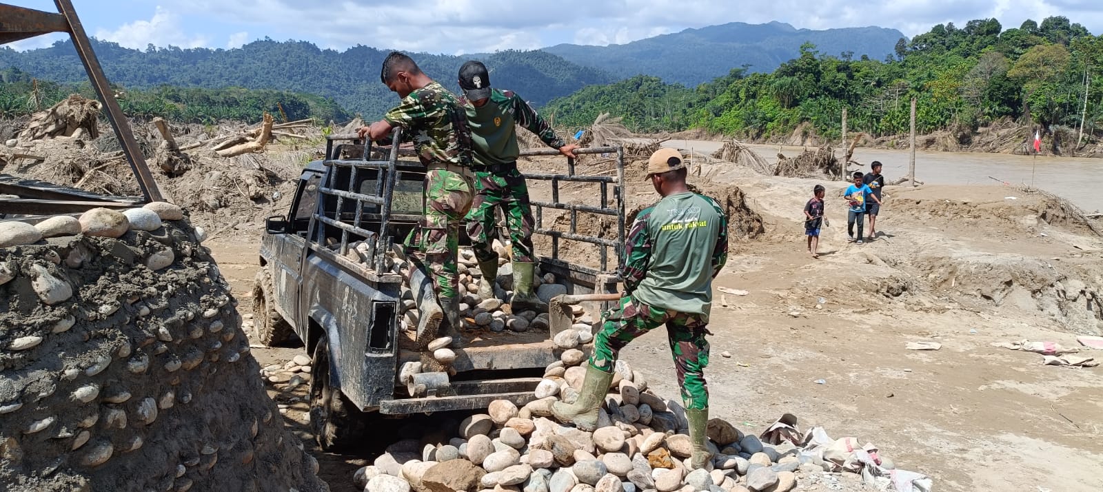 Danramil 10/Simpang Jernih menyampaikan bahwa kegiatan ini merupakan wujud nyata kepedulian TNI terhadap kesulitan masyarakat, khususnya dalam membantu percepatan pemulihan pasca bencana agar aktivitas pendidikan dan pelayanan kesehatan dapat kembali berjalan normal.