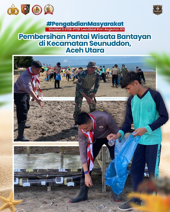 Kegiatan dipimpin oleh Perwira Pendamping dari STIK dan melibatkan personel TNI setempat serta aparatur gampong dan warga. Sejak pagi hari, para peserta bersama-sama memungut sampah plastik, kayu, serta limbah rumah tangga yang terbawa arus laut.