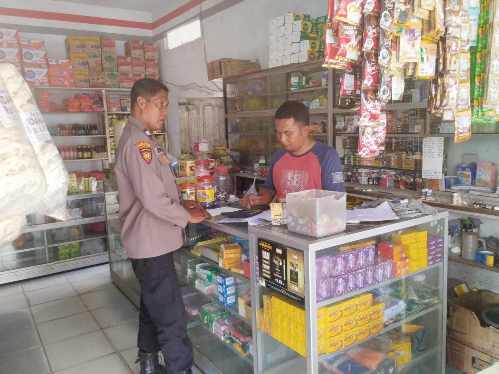 Pada Sabtu (28/2/2026), personel kepolisian terlihat aktif melakukan patroli dialogis dengan mendatangi toko-toko dan tempat usaha milik warga. Dalam kesempatan tersebut, polisi tidak hanya memantau situasi keamanan, tetapi juga memberikan imbauan kamtibmas agar para pemilik toko lebih waspada terhadap potensi tindak kejahatan.