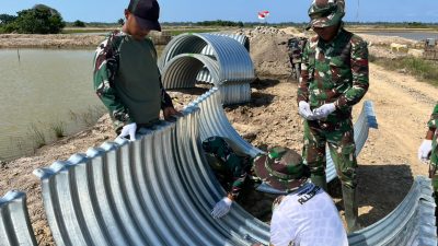 Adapun personel yang terlibat dalam kegiatan tersebut anggota koramil 14/Tja dan Yonzipur 5/ABW dengan total 23 personel diterjunkan untuk mendukung kelancaran kegiatan penurunan dan penataan material jembatan di lokasi.