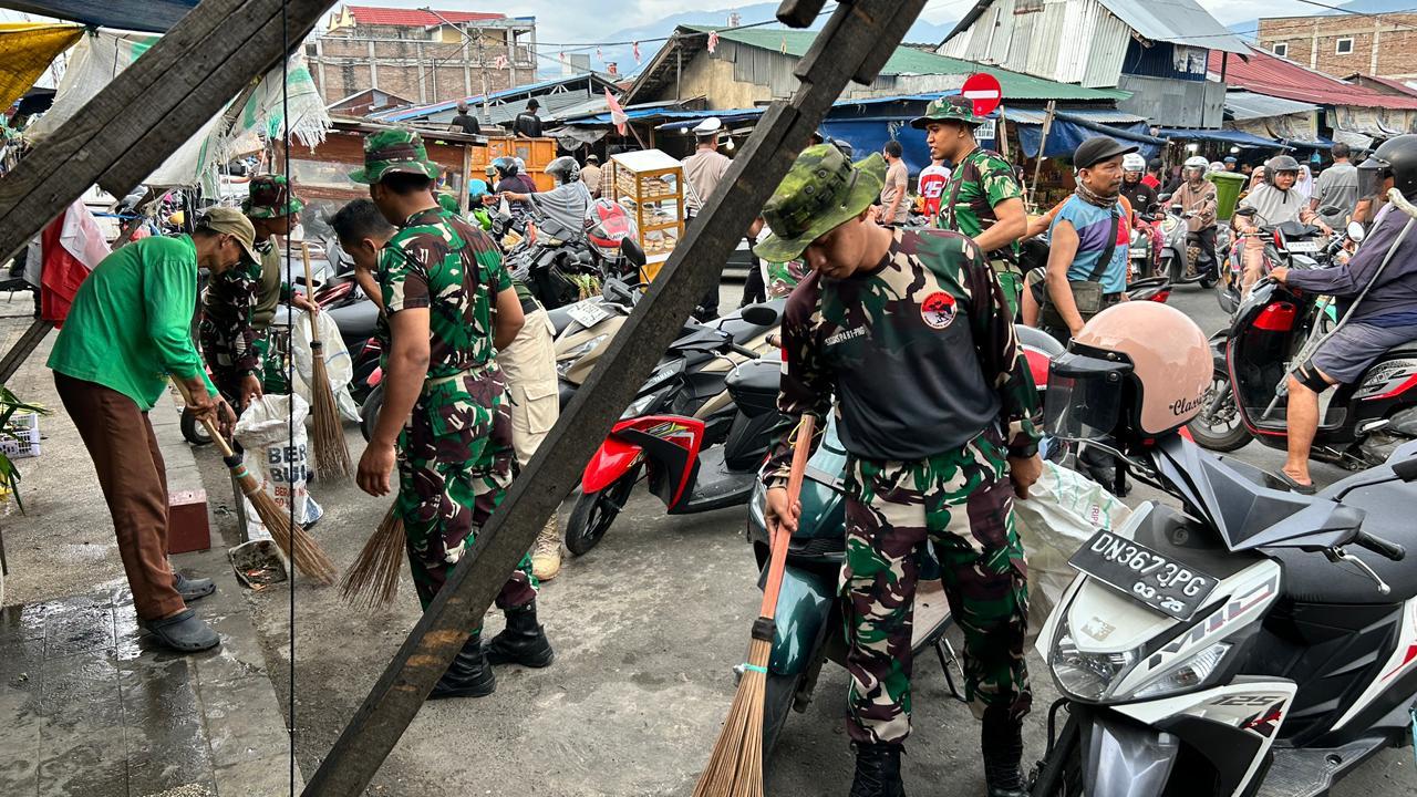 Melalui Karya Bhakti TNI, Kodam XXIII/Palaka Wira Tingkatkan Kepedulian Lingkungan di Pesisir Pantai dan Pasar Tradisional